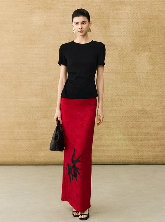 HECO Chinese style wrinkle elastic age-reducing temperament Skirt- ELLA.
