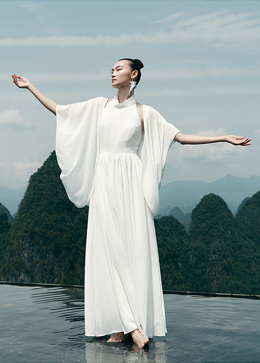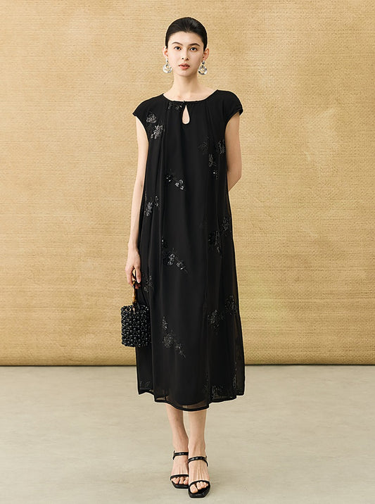 HECO Chinese Style Water Drop Neck Shoulder Embroidered Dress - SWEAT.