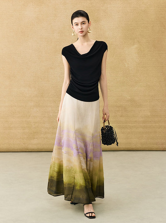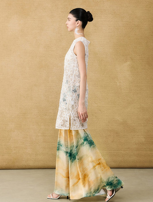 HECO Chinese Style Smudge Human Silk Camisole Cool and Breathable Seaside T - PALM.
