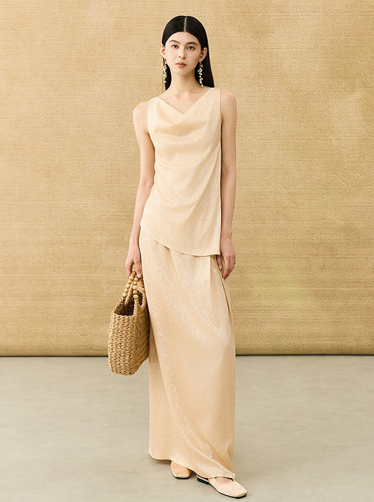 HECO Chinese Temperament Pearlescent High-Waisted High-End Texture Skirt - HELLS.