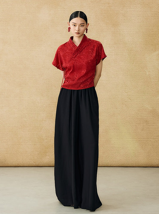 HECO Chinese style summer new slanted V-neck pinch pleated shirt - ASSURE .