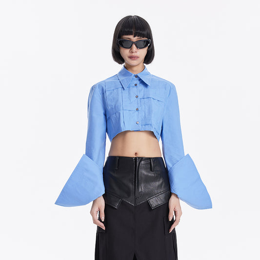 WANGXO Shaved Shoulder Top with Sculpted Cinched Waist -LORETTA.