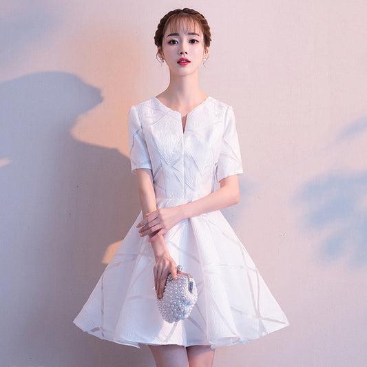 Gorgeous new small short white evening dress can usually be worn to host banquet- Vali (V)
