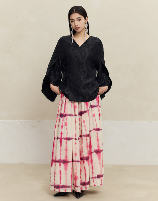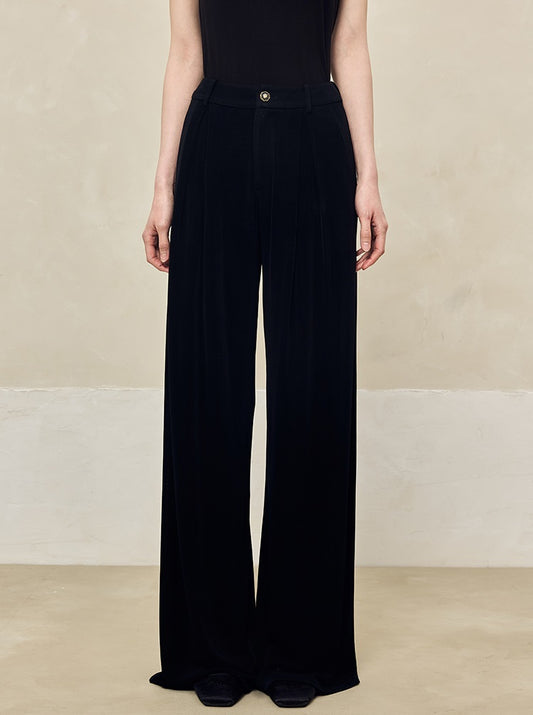 HECO 100% linen drape knitted casual wide-legged black white Pants Women - FINGER.