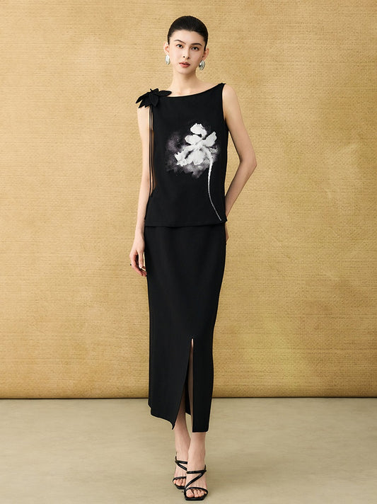 HECO Acetate Knitted Slit black white Long Top Women - FAVOUR.