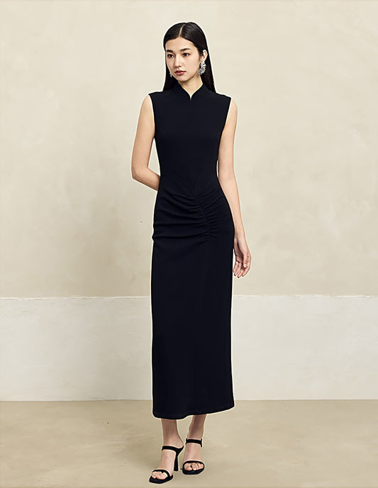 HECO Acetate Waist Black White Pleated Slim Dress Women - EARTH.