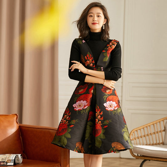 Autumn Long sleeve retro jacquard mid-length dress -Oli