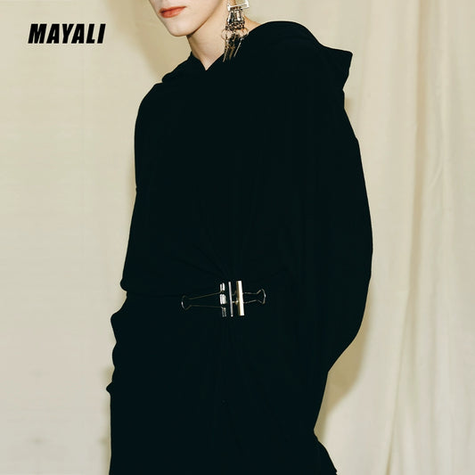 Autumn Winter luxury hoodie pinched pleated waist sweatshirt - kIC
