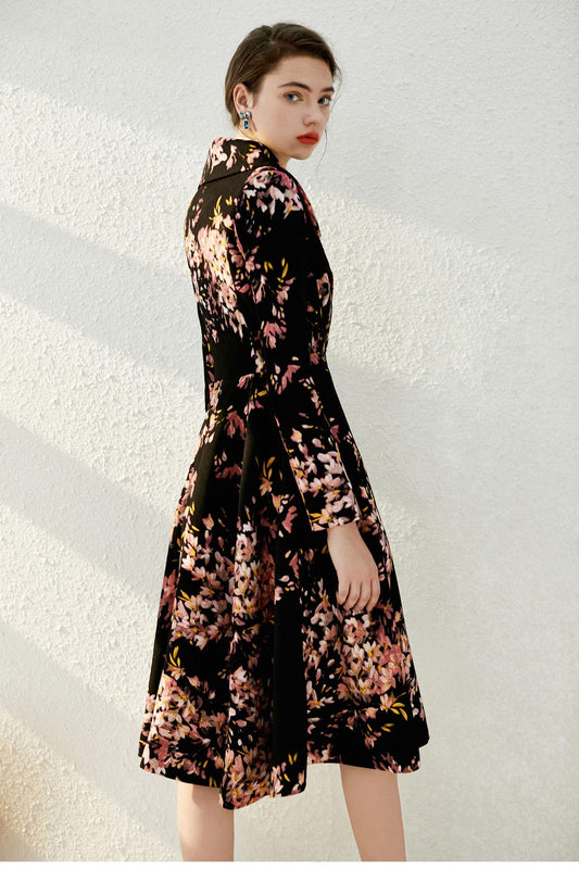 Autumn winter flloral 1950's audrey hepburn double breasted coat vintage jacket dress - Madlyn