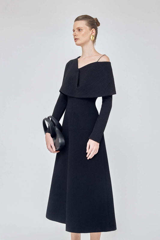 BLACK COCOON CAP AND SPAGHETTI STRAP DRESS TWO PIECE SET-AYE