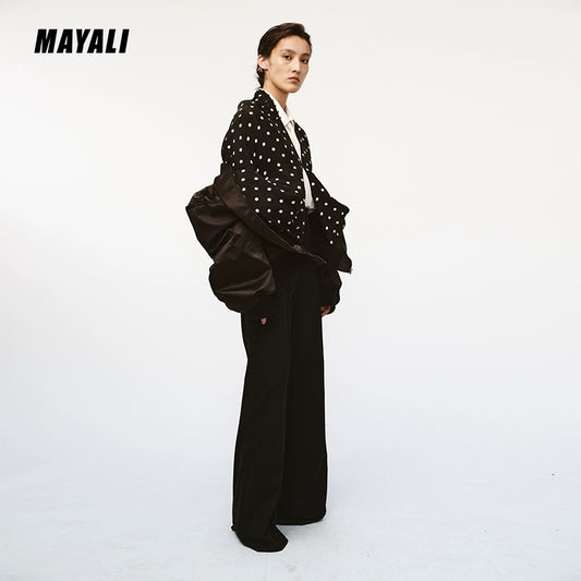 MAYALI autumn winter false two-piece layered polka dot contrast bomber jacket - Ioow