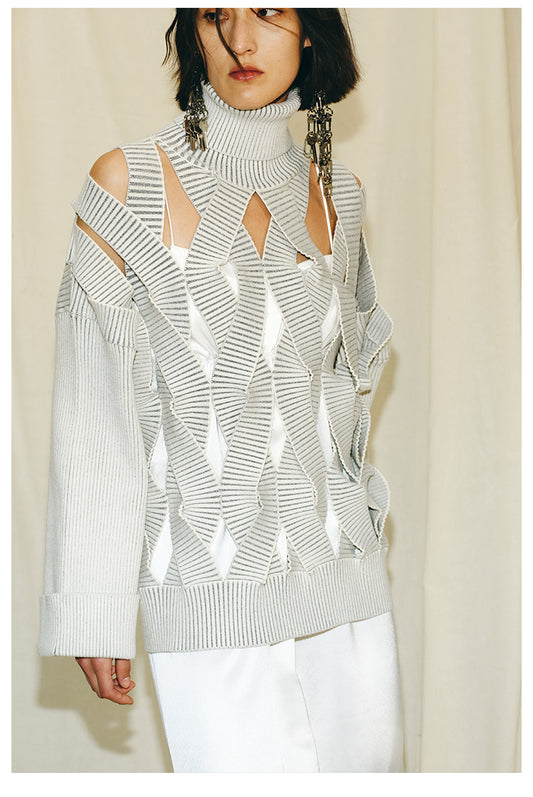 MAYALI fall/winter geometric crossover crewneck knitted turtleneck long-sleeved sweater - intarsia