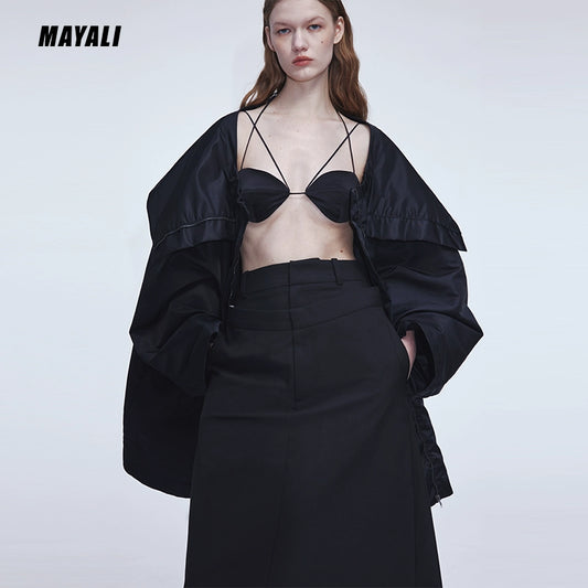 MAYALI Fall/Winter Aircraft Buckle Wide-shoulder Jacket - chilla