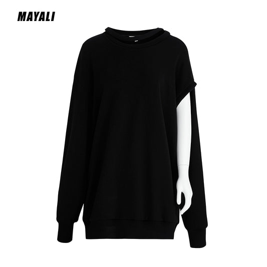 MAYALI deconstructed long-sleeved T-shirt cut-out irregular shirt - buii