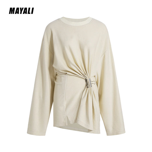MAYALI fall crewneck deconstructs pinched pleated sweatshirt - Aliok