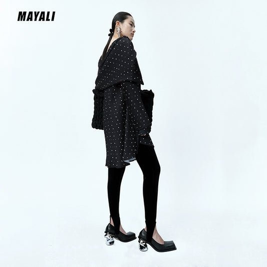 MAYALI Fall/Winter Asymmetric off-the-shoulder pressed pleated black polka-dot top - Yuii
