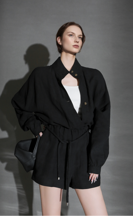 PIAOIN French one-piece design niche stand-up collar jumpsuit spring-AURORA