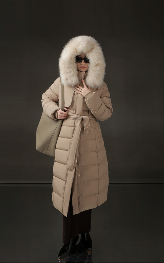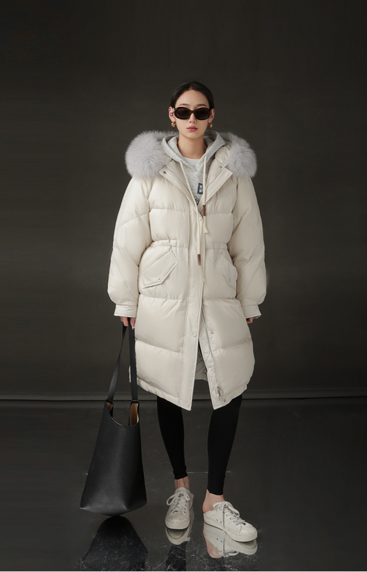PIAOIN Korean Slim Fox Fur Long Down Thickened Jacket Coat-CATE