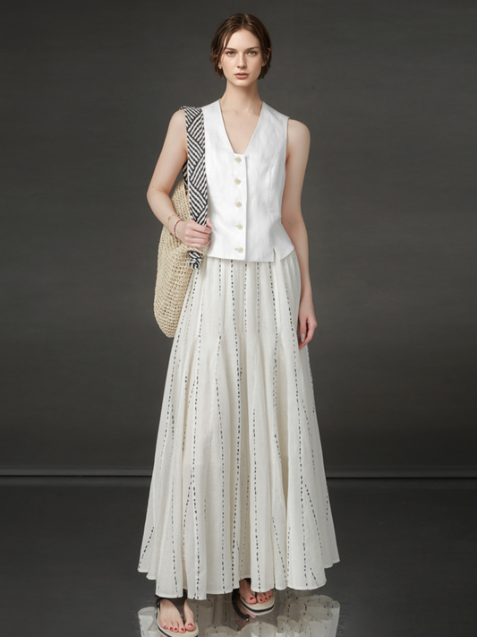 PIAOIN French dotted stripe micro fishtail skirt women's Tencel linen texture A-line skirt-CELESTE