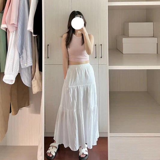 PIAOIN French pleated design three-tiered cake maxi pleated skirt spring-BELLE