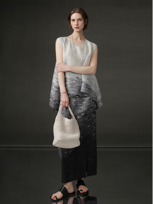 PIAOIN Gradient Pleated Suit Women's Irregular Sleeveless T-Shirt Hip Skirt Summer-AUDREY