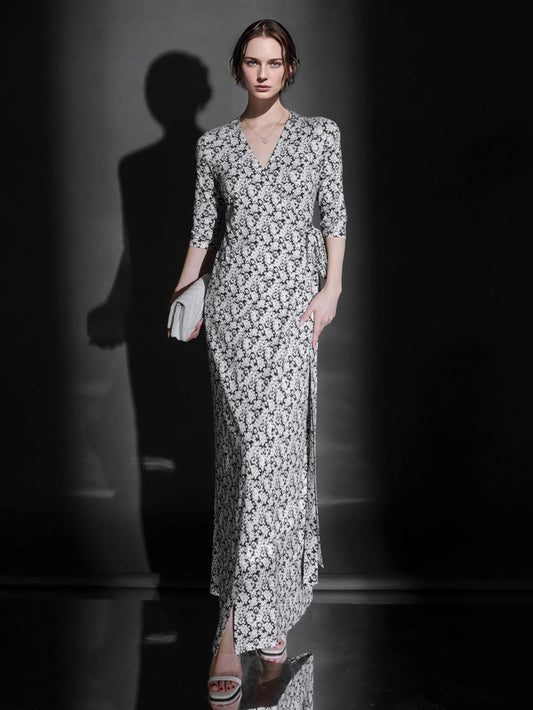 PIAOIN French Hepburn style slim lace-up design goddess long dress-T-AURORA.