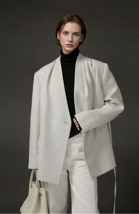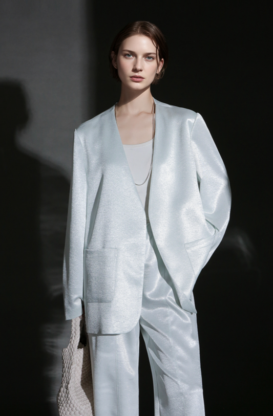 PIAOIN light luxury Acetate V-neck suit women's loose high-quality blazer -BEATRICE