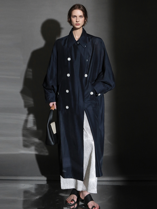 PIAOIN Light Luxury Silk Luster Tencel Linen Trench Coat Jacket -JOSEPHINE