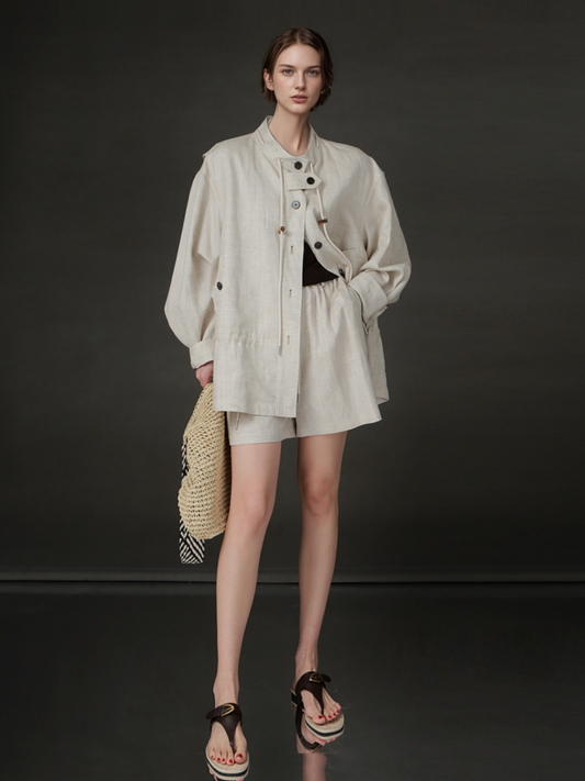 PIAOIN Light Luxury Tencsel Linen Elasticated Waist Drawstring Shorts Versatile Straight Pant-AMELIA