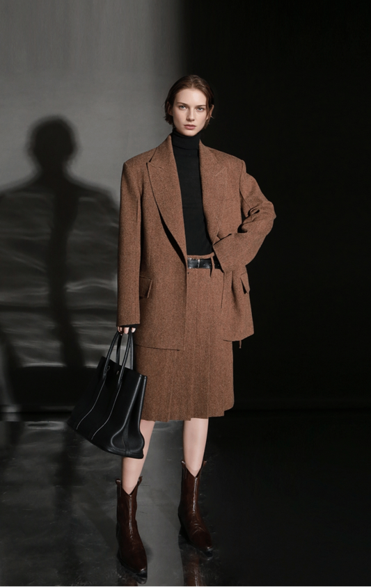 PIAOIN vintage woolen pleated premium skirt-LUCY