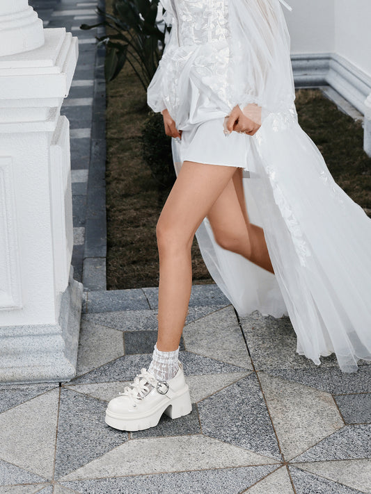 Pjjuu Alt student bowed punk white Maryjane Platform Soled loafer - Emo