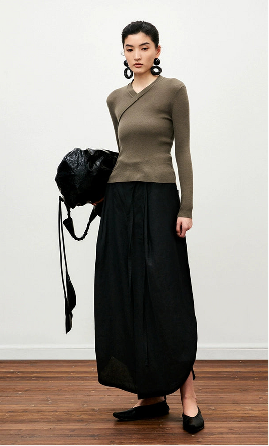 ZHUCHONGYUN winter cross-body slim sweater V-neck knitted top--FUUKI.