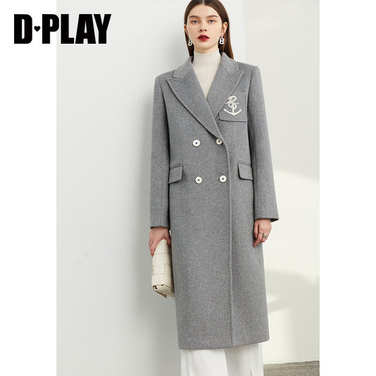 Fall Autumn Lapel Neck Navy Blue Three-Dimensional Double-breasted Wool Coat -Mel