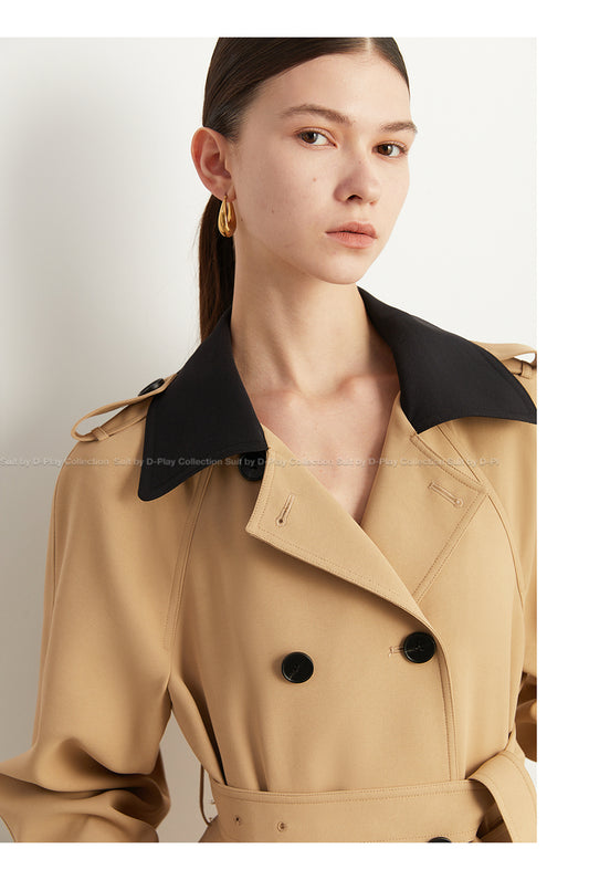 Fall Autumn Luxury British Khaki Old Money midi Trench Coat - Doas