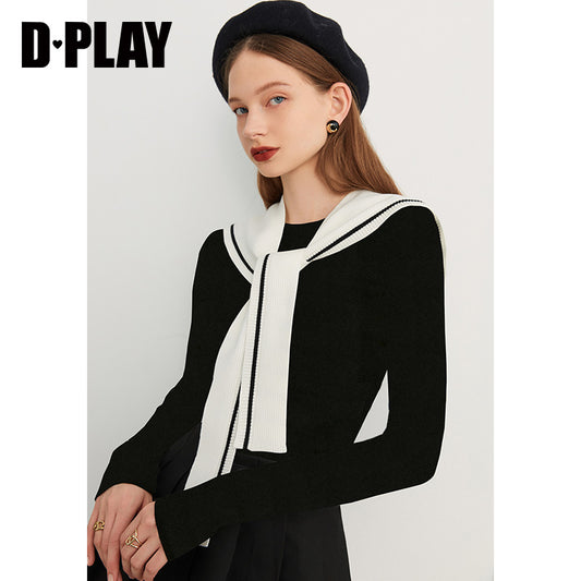 Fall Autumn Preppy Navy Neck monochrome striped knit dress - Keial