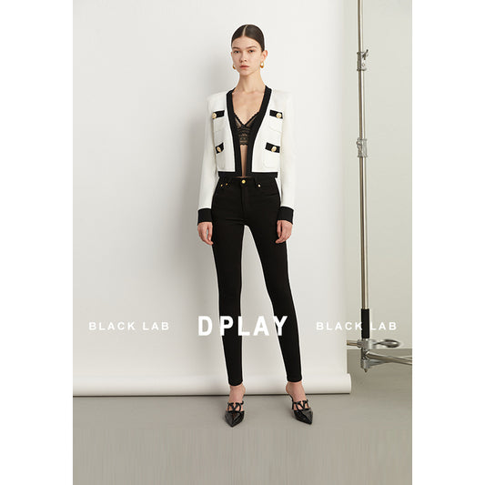 Fall Autumn Premium Black and White Contrast crystal pocket Blazer dress- Darlyn