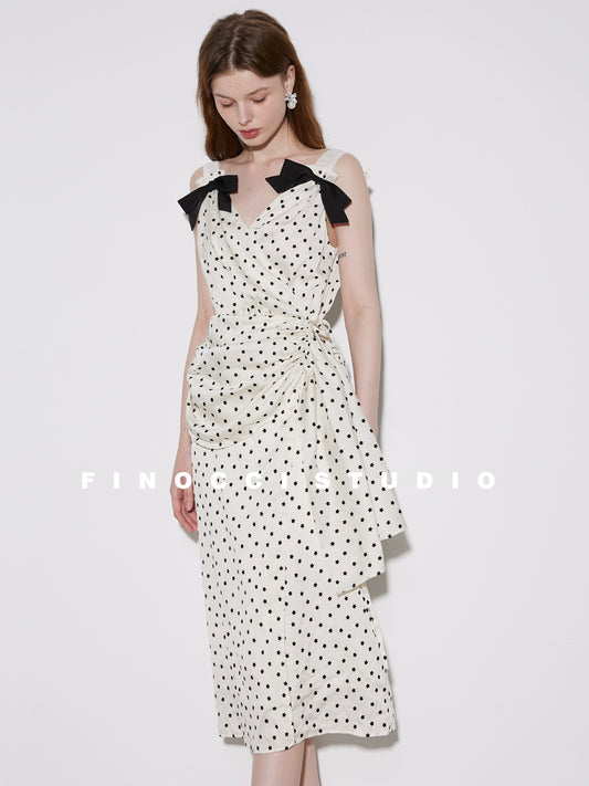 Women's Deep V Flocked Flower Bow dinner dater resort dress - Amin