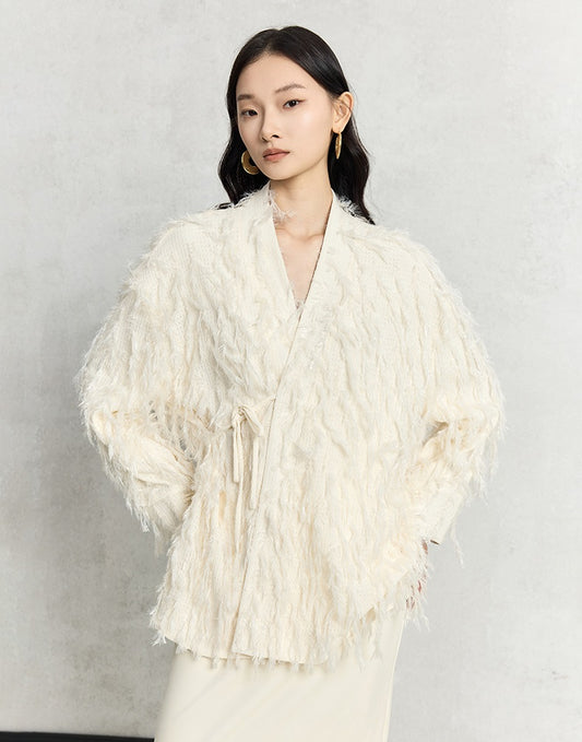 HECO Loose Butterfly Dark Grain Jacquard Thick Jacket - essie.