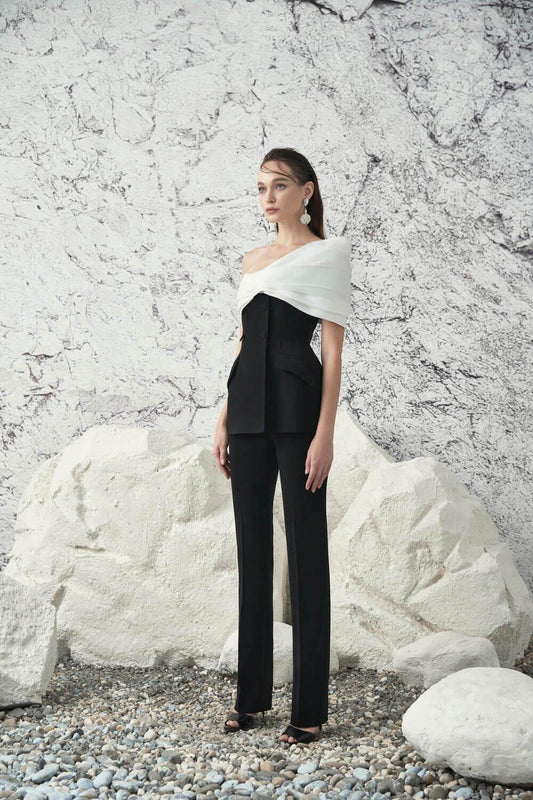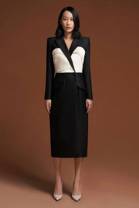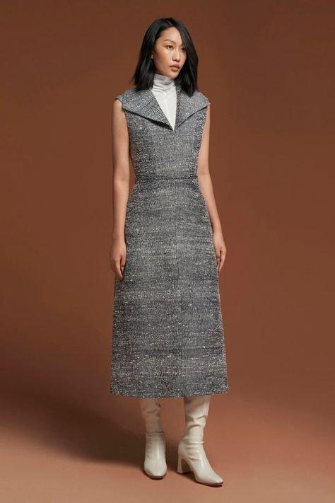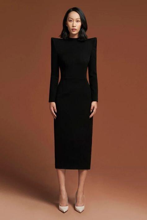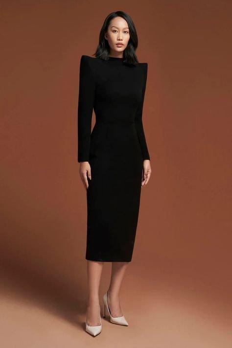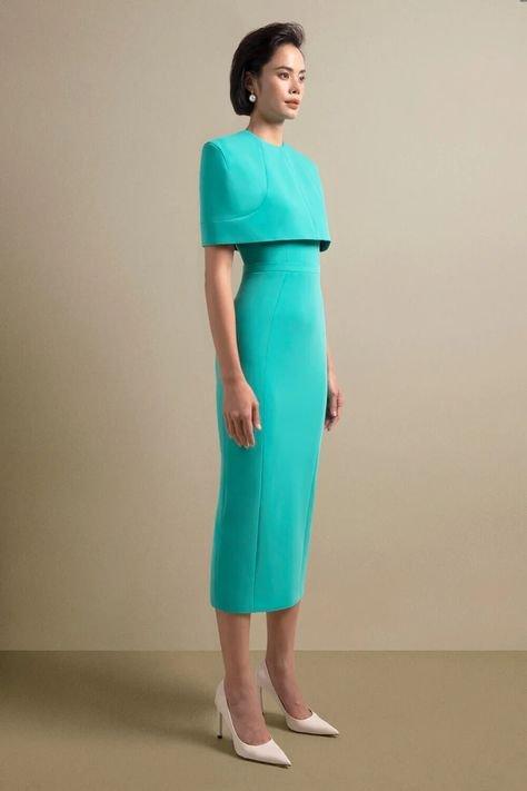Bold colar v neck sleeveless highend pencil dress-Sari