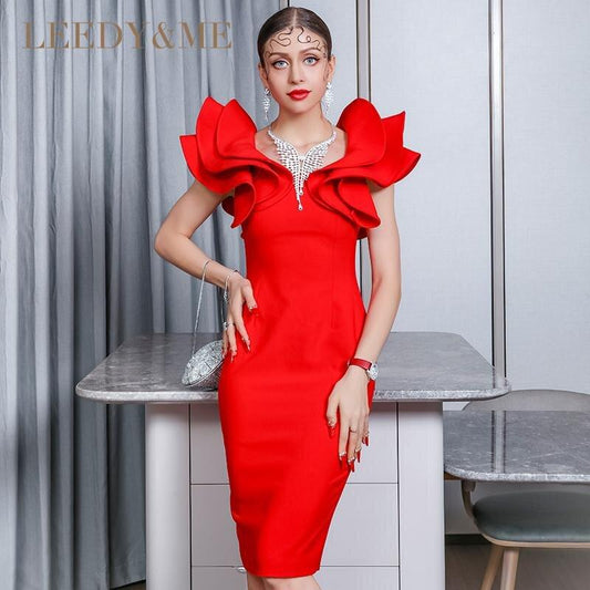 Red hot elegant one-shoulder bodycon ruffled hips slim pencil dress party cocktail dress - Hina