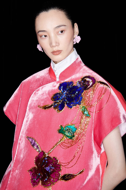 M essential Ma Kai designer three-dimensional red nail beads cheongsam - larkk.