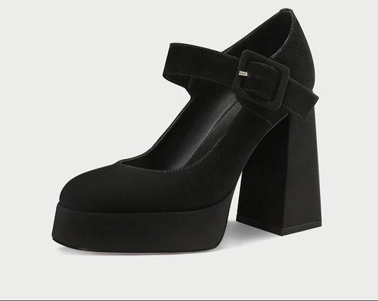 PJJUU Lolita Platform Straight Strap square High Heels Maryjanes - NELO
