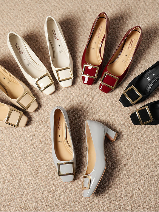 Pjjuu Nude R Square Buckle Single Shoes - NEED