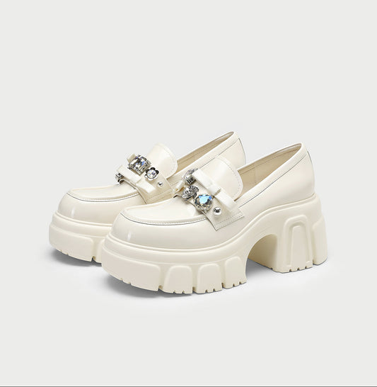 Pjjuu Alt student bowed punk white Maryjane Platform Soled loafer - Emo
