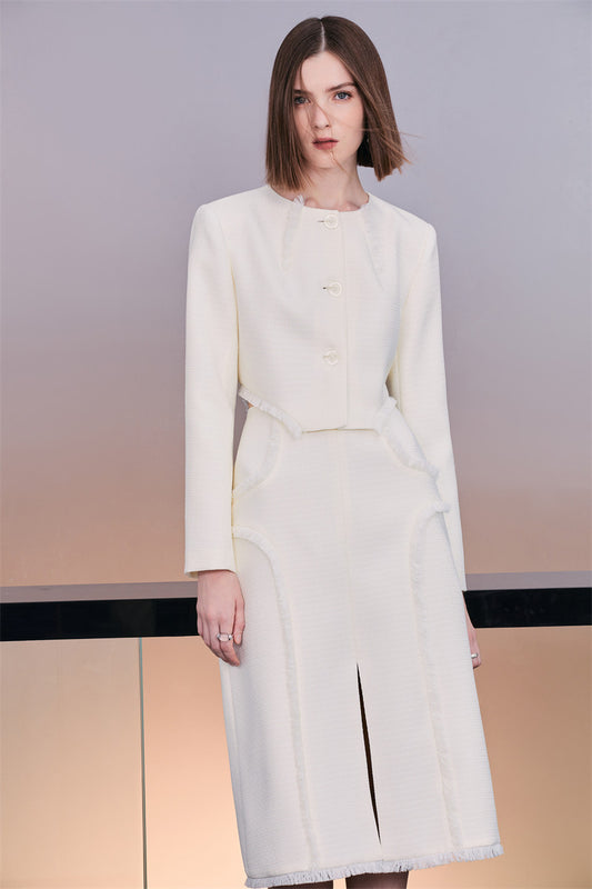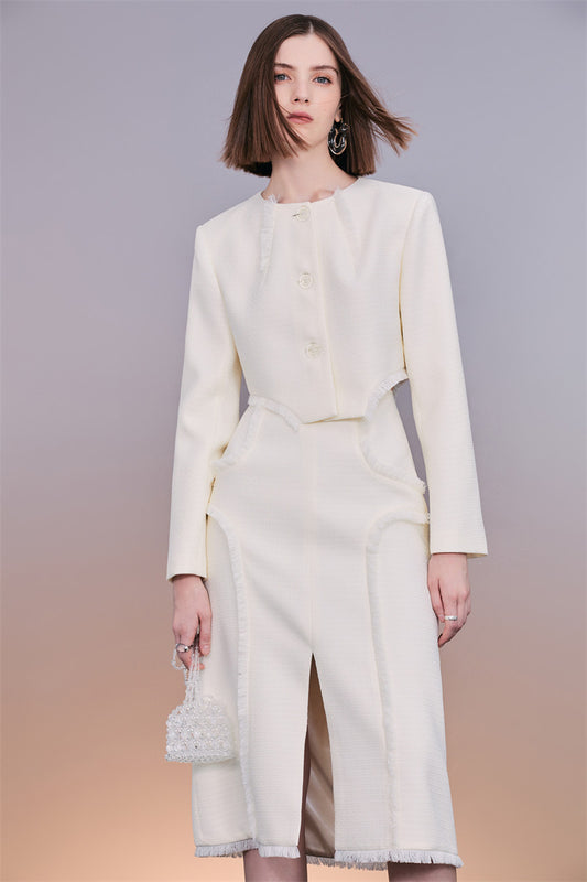 PURITY High-quality off-white tweed fringed coat skirt - Chriselle