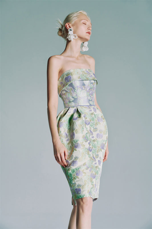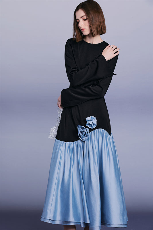 PURITY elegant handmade floral panels slim-fit long-sleeved fishtail dress- Niche