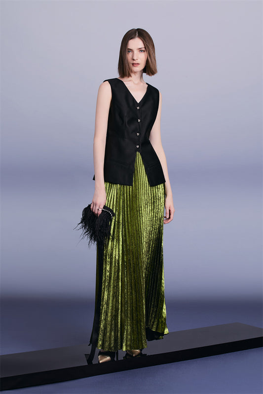 PURITY lacquered metallic gold A-line skirt silhouette leather vest- Celeste