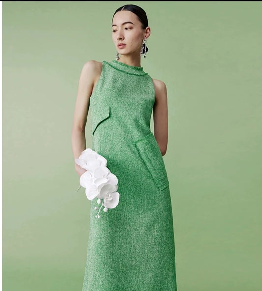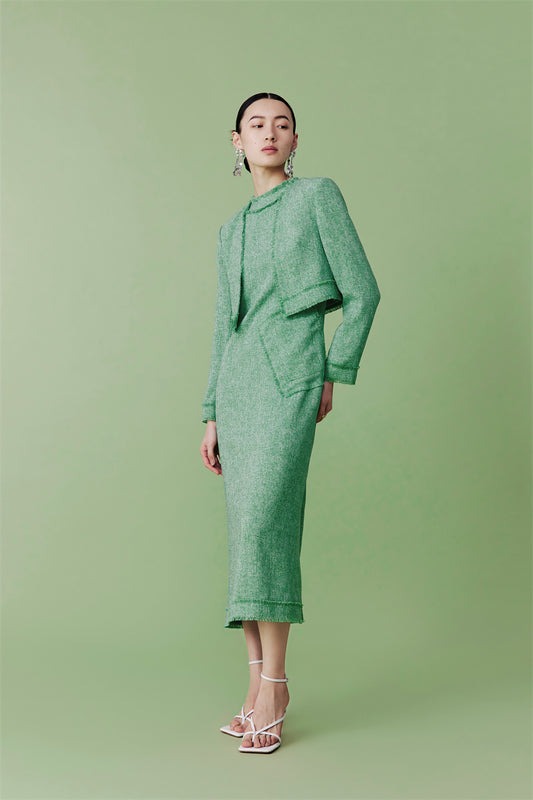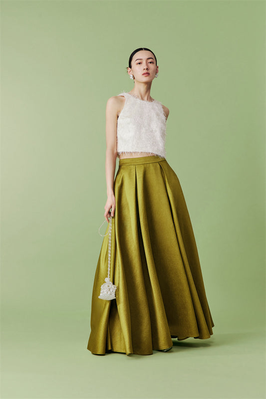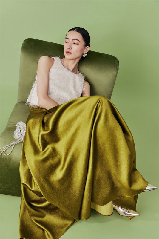 PURITY Luxury French fruit green bamboo satin skirt set- Aura
