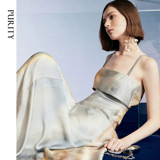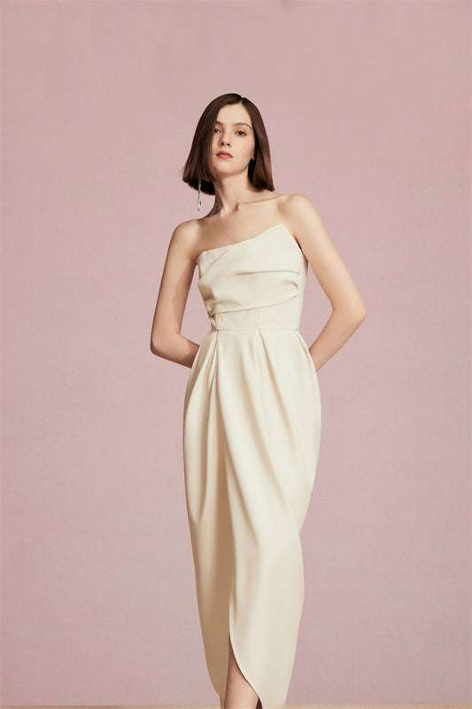 PURITY High-end light luxury champagne design sense satin bandeau top- Crisp
