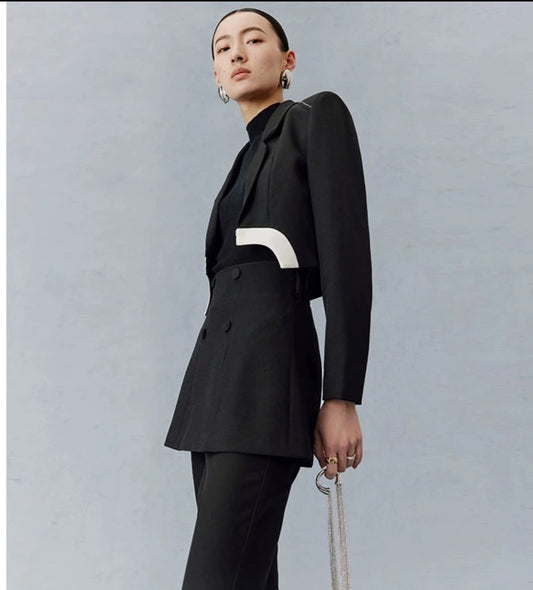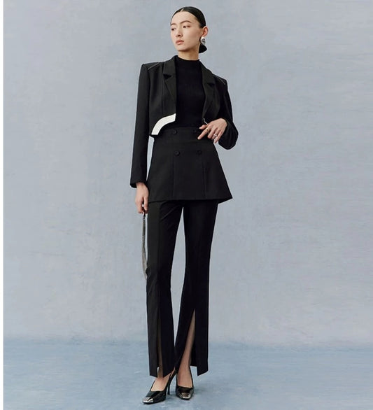 PURITY Classic blue blazer front slit slightly flared pants- Madison